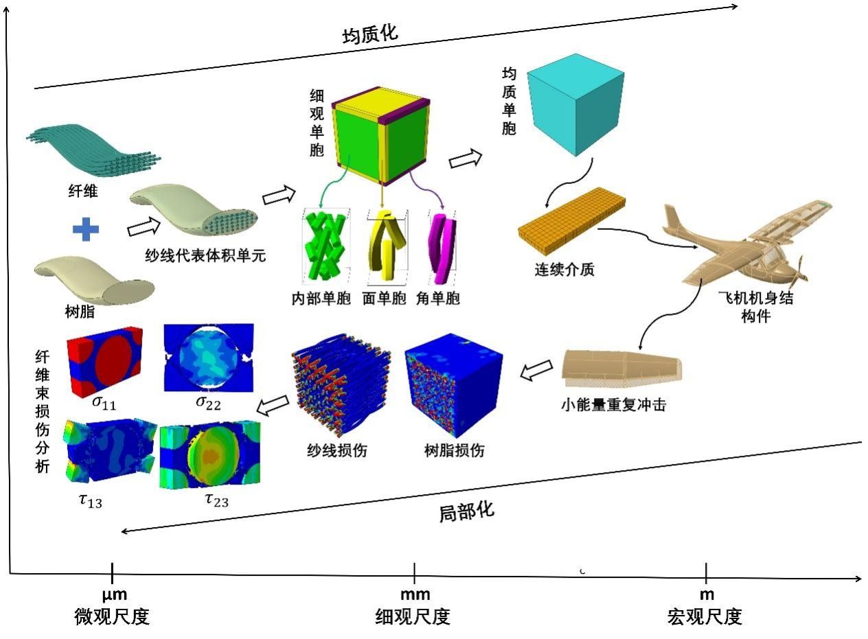 以纤维增强复合材料航空航天、交通运输、工程结构等领域应用为背景,针对当前构件抗分层能力差、韧性不足、重量冗余等瓶颈,通过多尺度结构设计方法,开发轻量化、抗冲击纤维增强复合材料,赋能低空经济、航空航天等领域的产业发展。