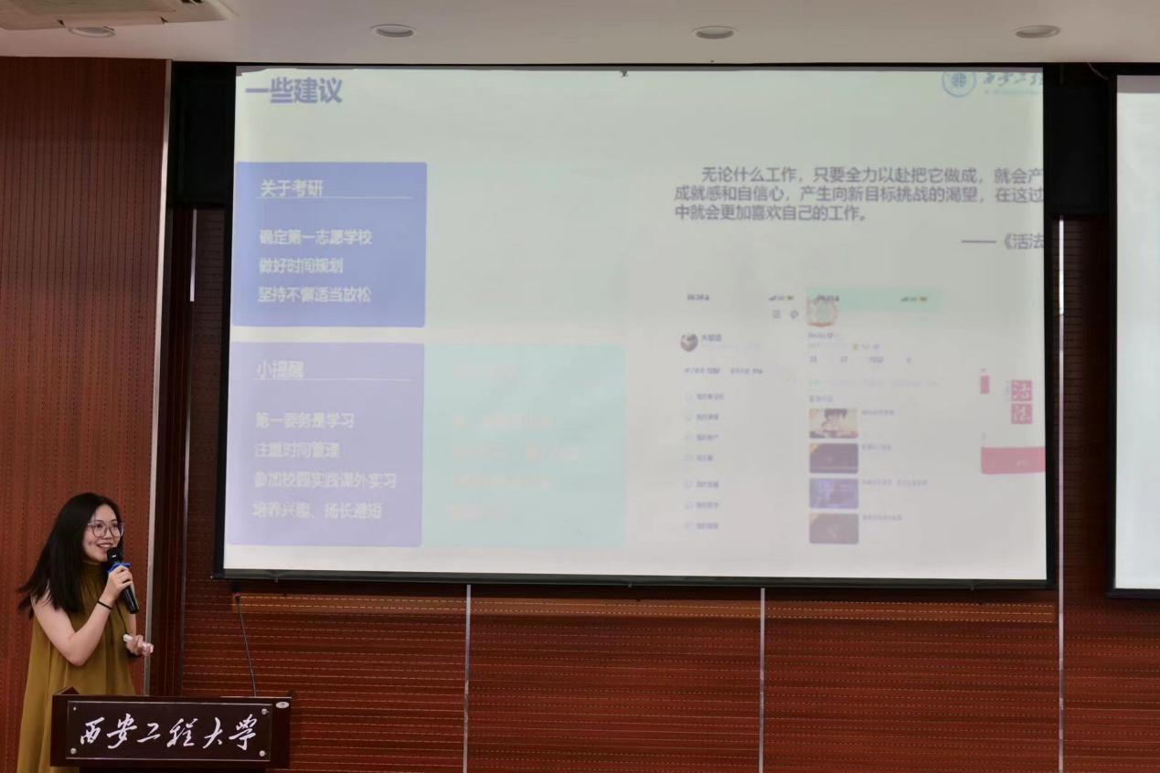 为充分发挥优秀毕业生的模范作用,推动学院学风建设,助力低年级同学明确发展方向,做好个人规划。纺织科学与工程学院于2023年6月16日在临潼校区图书馆二楼报告厅召开榜样引领织梦前行纺织启蒙论坛之优秀毕业生经验分享会,特邀请我院优秀研究生毕业生丁玎、陆琳琳、李亚森,张兰做学习经验分享,学院2021级、2022级学生参加活动,辅导员邓恩征主持会议。
