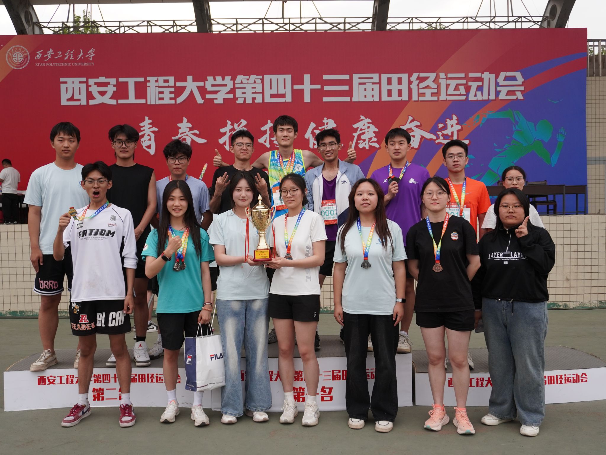2025年4月17日—18日,我校在临潼区东环体育场举办第43届田径运动会,本届运动会以“青春,拼搏,健康,奋进”为主题,纺织科学与工程学院运动健儿奋勇拼搏,获得学生团体第一名的好成绩。