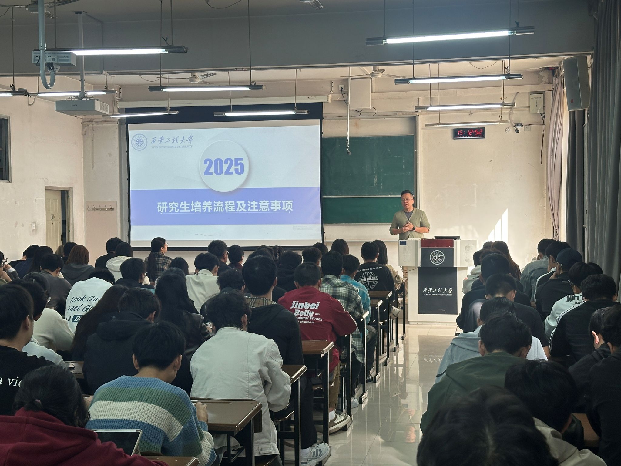 接着,王秋实针对研究生培养流程和注意事项以及学位授予管理规定等文件进行了细致解读。他结合学科发展趋势与培养目标,对培养环节、学术要求、研究方向聚焦等内容展开详细说明,让新生们清晰把握研究生阶段的学习重点与科研方向,为今后高效开展学习和科研工作提供了明确的政策指引和路径参考。