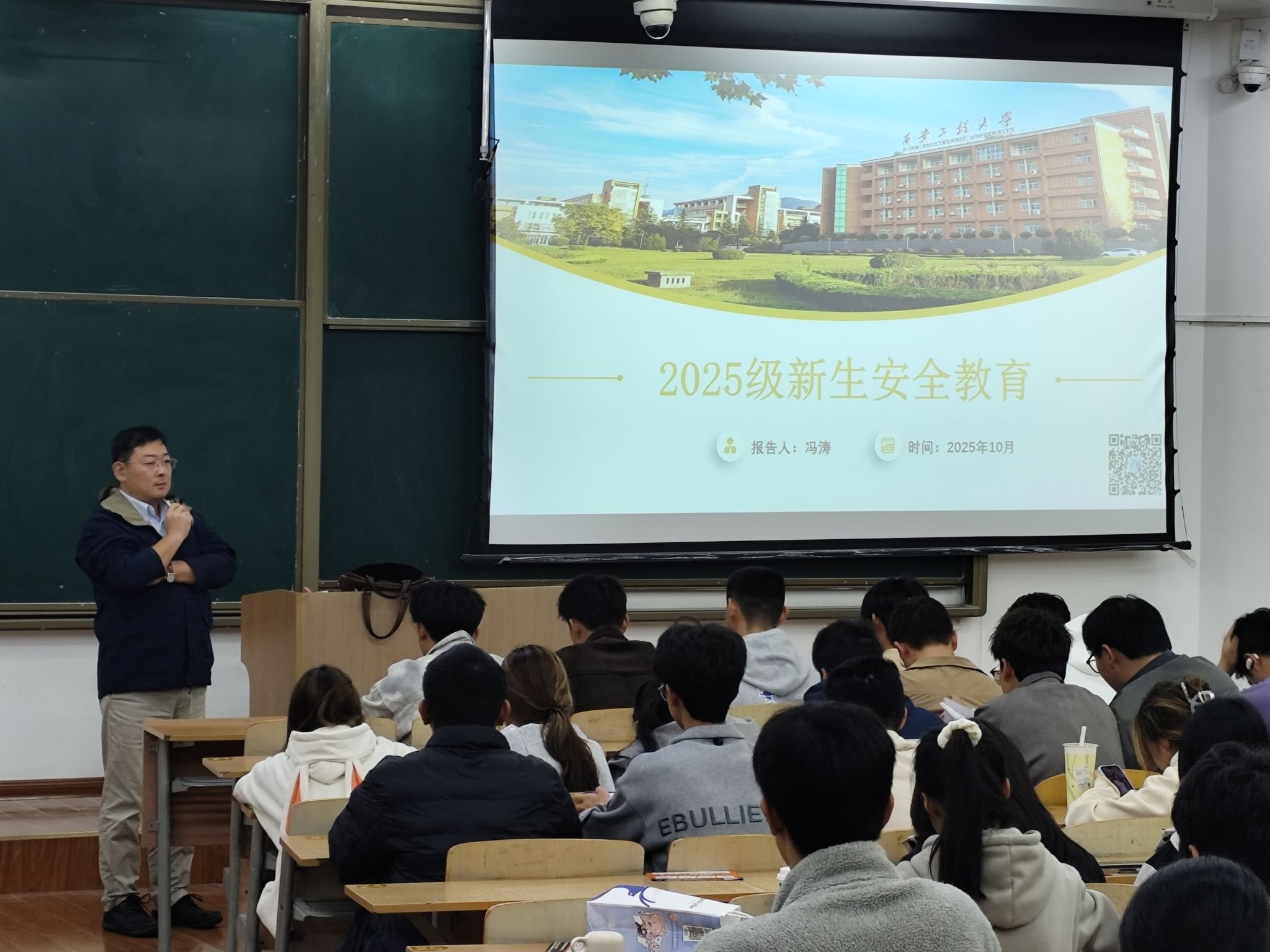 为切实增强2025级本科新生安全防范意识与自我保护能力,筑牢校园安全防线,2025年10月14日晚19:00,纺织科学与工程学院在B-137教室举办安全稳定主题教育讲座。学校学工部副部长冯涛老师担任主讲人,2025级辅导员及全体本科新生到场聆听。