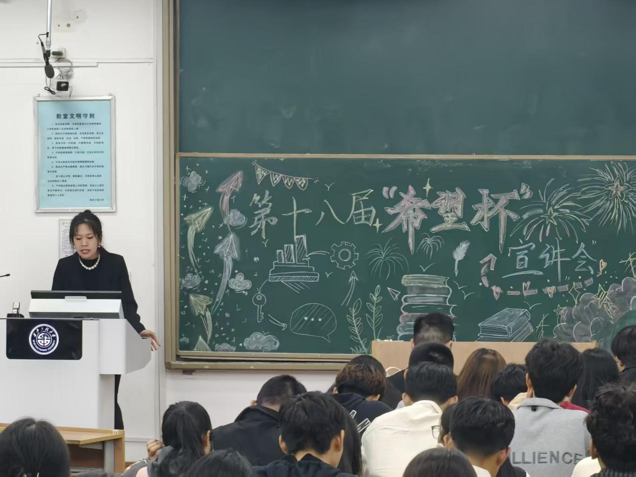 宣讲会前,学院科协科技竞赛部部长郝圆圆指出参与高水平竞赛是同学们拓展视野、锤炼意志的宝贵机会。她简要介绍了本年度的竞赛布局,使同学们对“希望杯”有了一个基础的认识,她鼓励大一新生主动参与、勇于挑战。