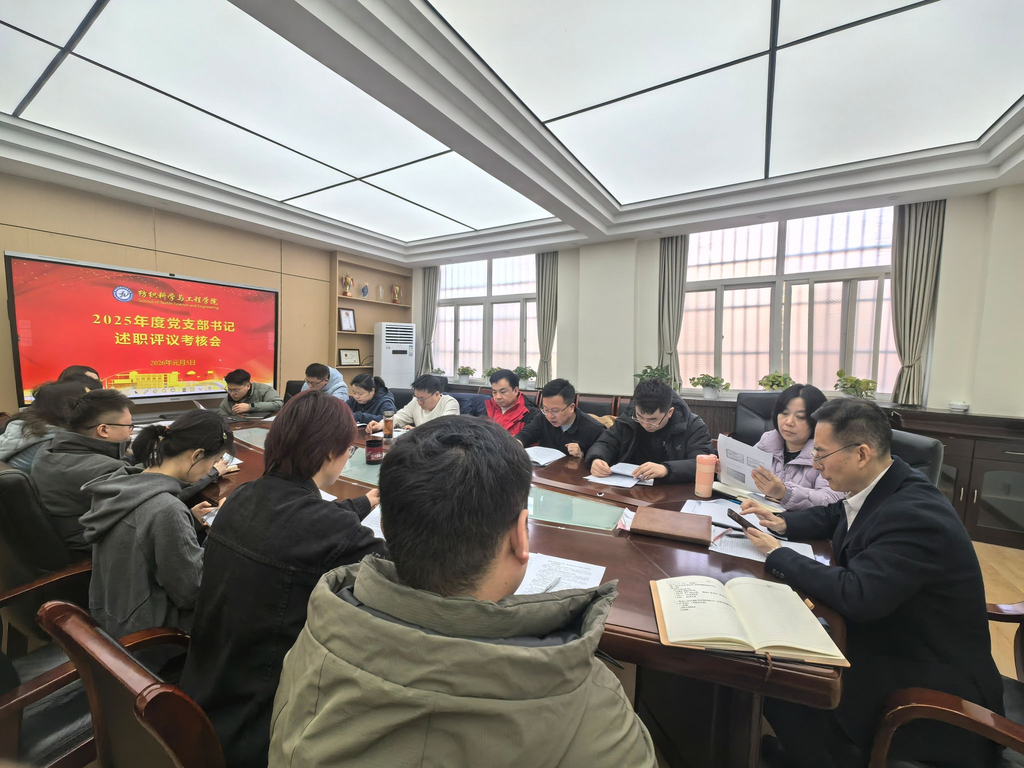 2026年1月5日,根据学校《关于做好2025年度基层党支部考核的通知》要求,为确保学院党支部书记职责的有效履行,并持续强化党支部建设,纺织科学与工程学院在金花校区纺织楼404会议室召开2025年度党支部书记述职评议考核会。学院党委委员、全体党支部书记参加会议,会议由学院党委书记李伟主持。