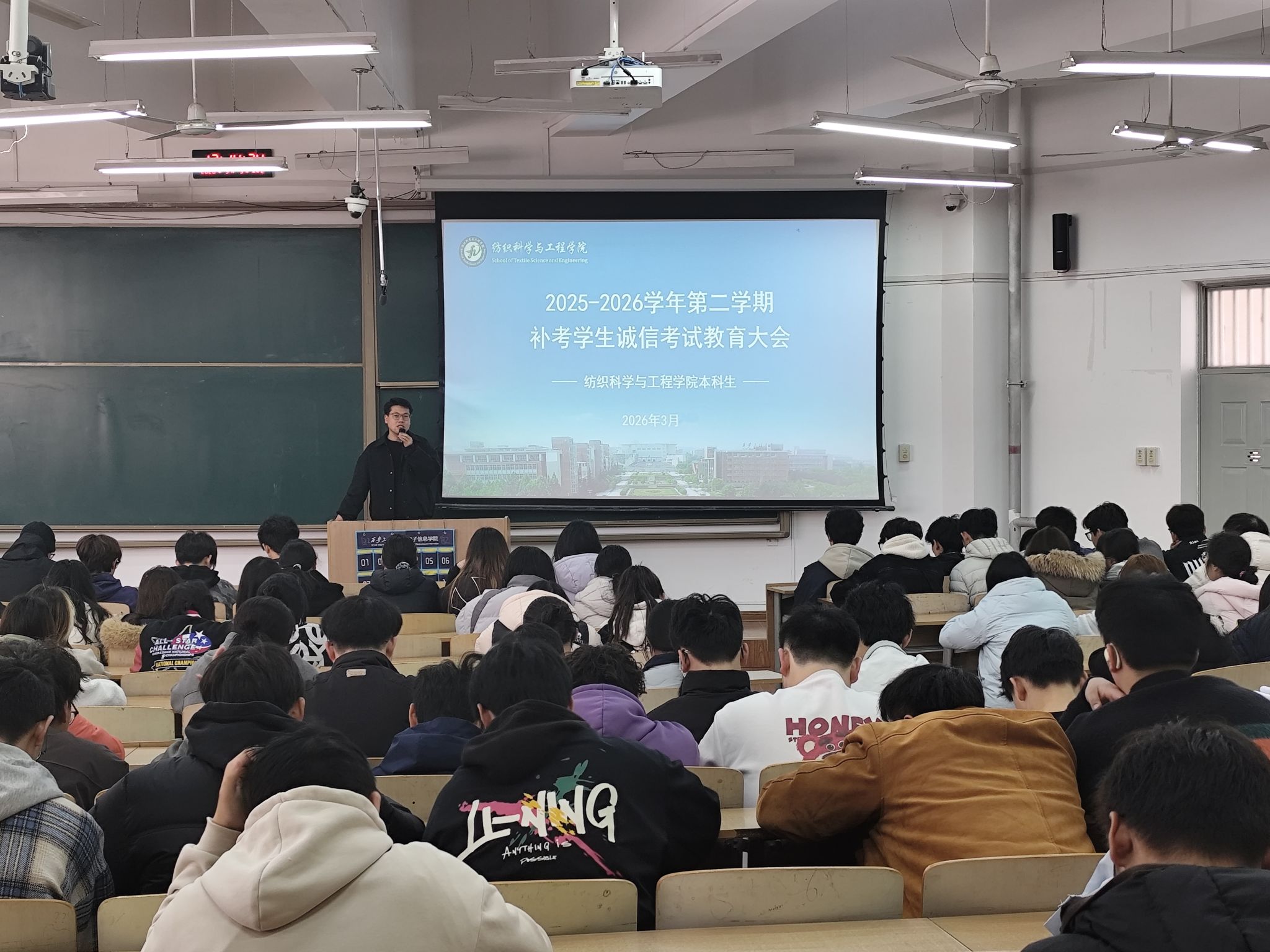春启新程,笃行致远。为切实强化新学期教学管理,严肃学风纪律,精准帮扶学生成长,近日,纺织学院围绕开学教学秩序、补考诚信教育、学业预警帮扶三大重点,在两校区有序开展系列工作,为新学期学风建设筑牢根基,为学生学业发展保驾护航。